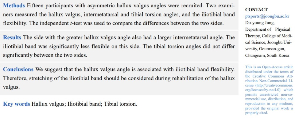 Between-side Comparisons of Iliotibial Band Flexibility and the Tibial Torsion Angle in Subjects with an Asymmetric Hallux Valgus Angle