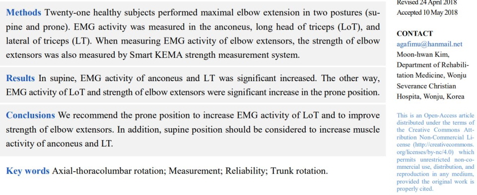 Comparison of Elbow Extensor Muscle Strength and EMG Activity in Supine and Prone Positions in Healthy Subjects
