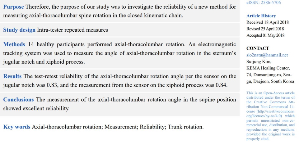 Reliability of Axial-Thoracolumbar Spine Rotation Range Measurements