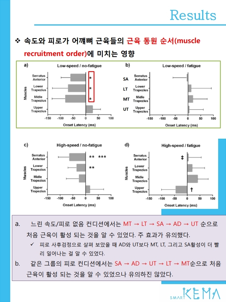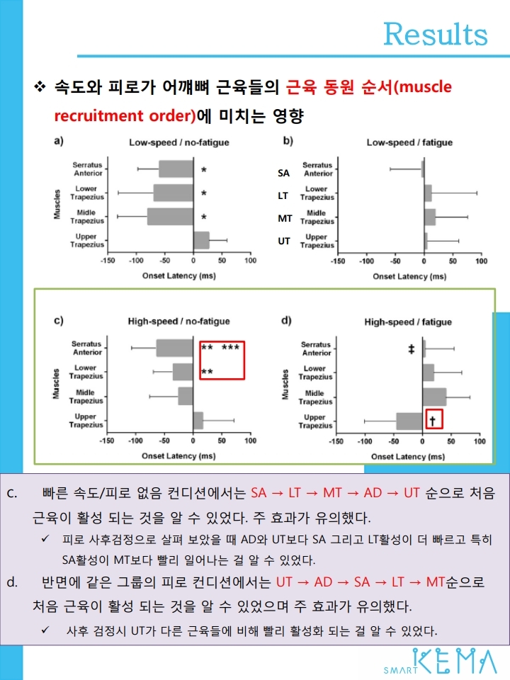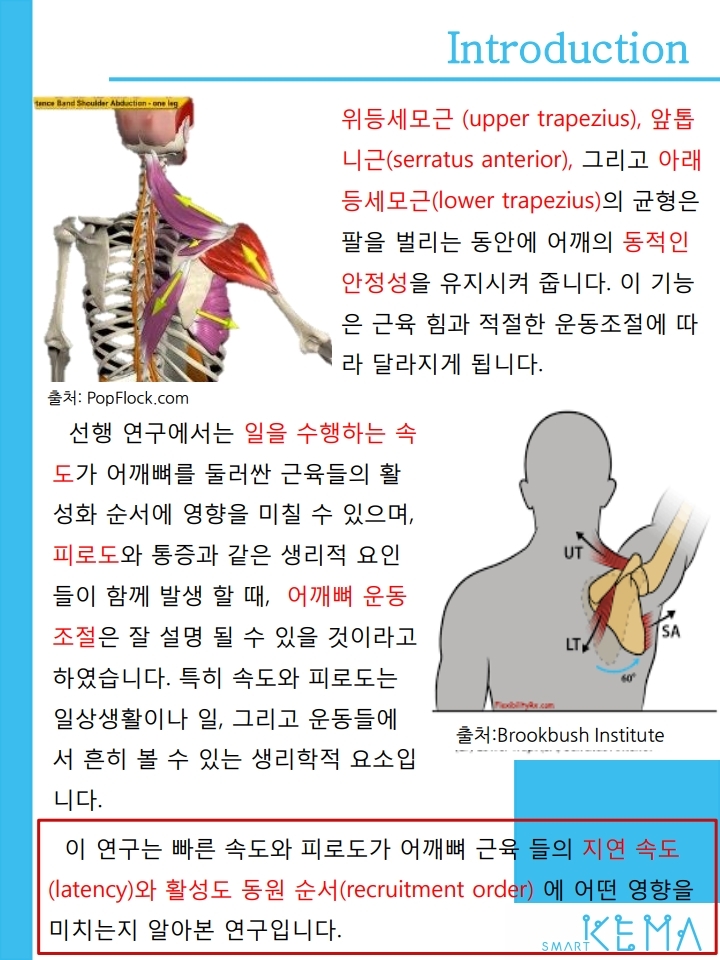 어깨 근육의 근육동원순서(muscle recruitment order)의 변화를 일으키는 움직임