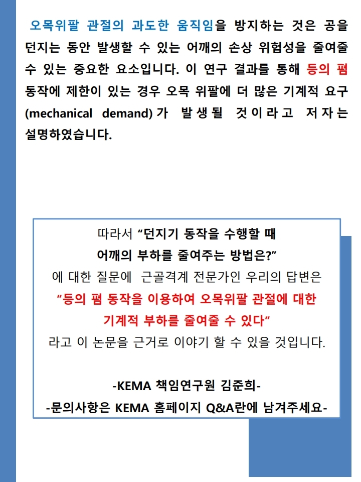 던지기 동작을 수행할 때 어깨의 부하를 줄여주는 방법은?