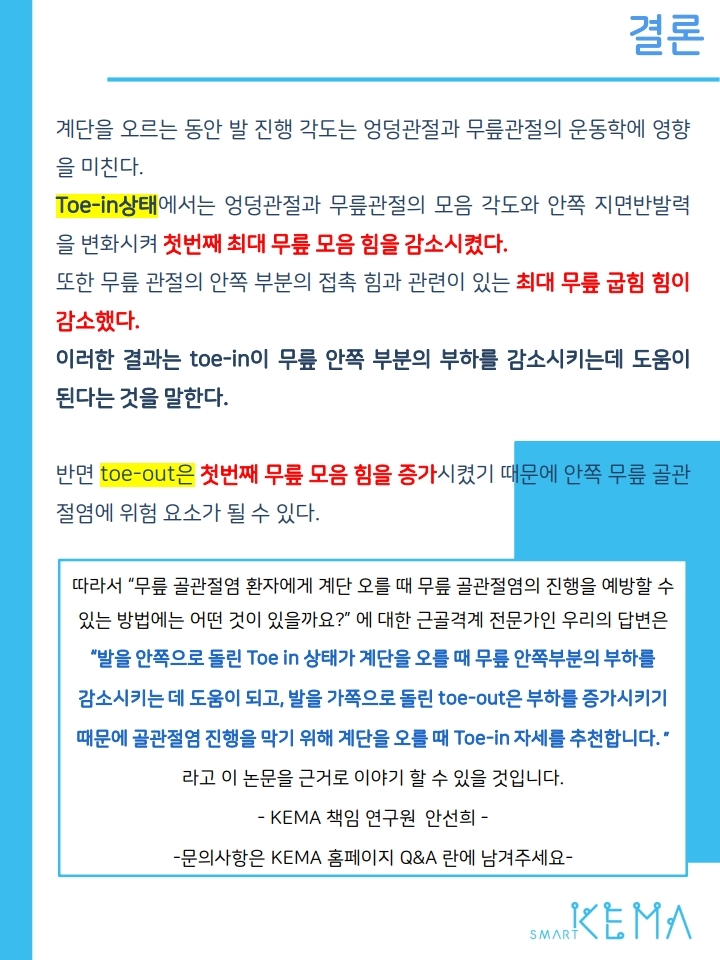 무릎 골관절염의 진행에 발의 진행각도 변화가 어떤 영향을 미칠까?