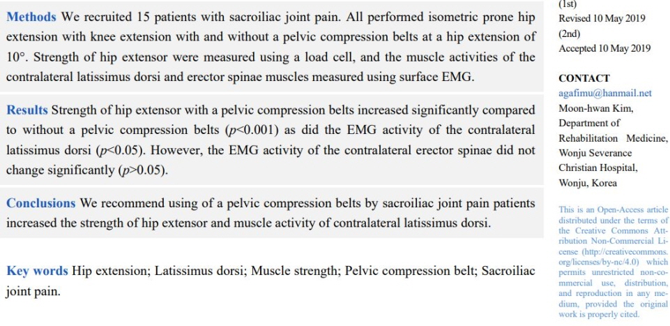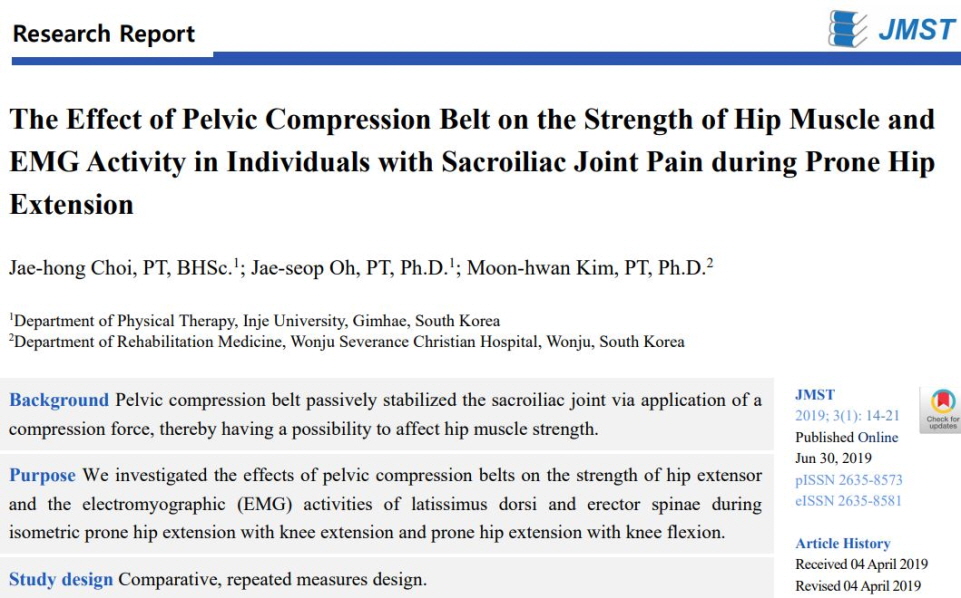 The Effect of Pelvic Compression Belt on the Strength of Hip Muscle and EMG Activity in Individuals with Sacroiliac Joint Pain during Prone Hip Extension